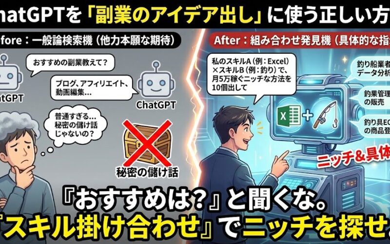 ChatGPTに「副業おすすめは?」と聞くな。『私のAとBで月5万稼ぐ方法は?』と聞け