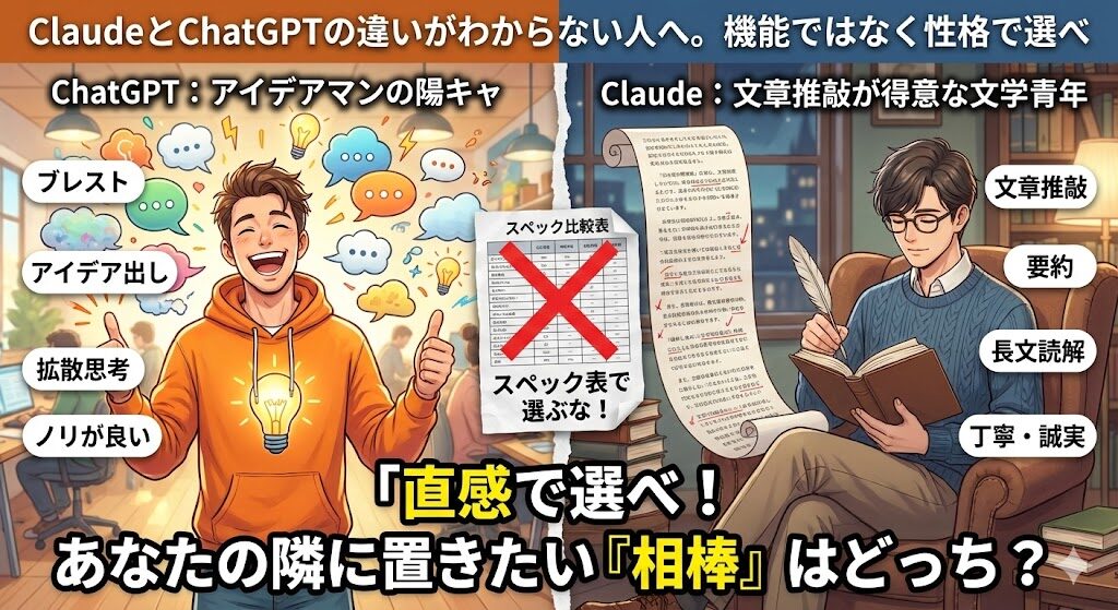 ChatGPTは「即レスの陽キャ」、Claudeは「思索する文学青年」