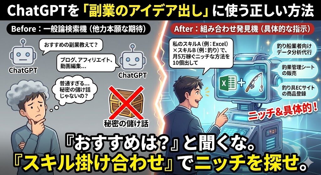 ChatGPTに「おすすめの副業を教えて」と聞く行為は、レストランで「何か美味しいもの作って」と注文するようなものだ。