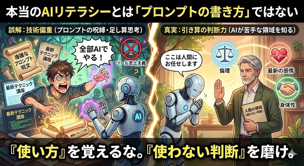 本当のリテラシーとは、「プロンプトを書く技術」ではない。「ここではAIを使わない」と決められる判断力だ。