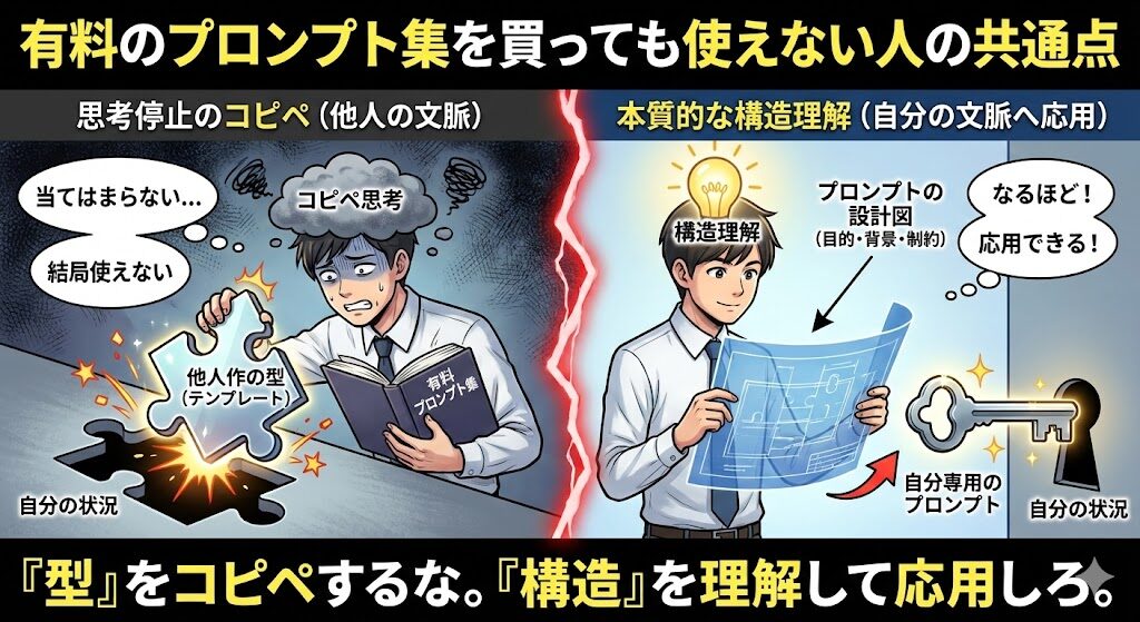 重要なのは、コピペすることではない。「なぜこのプロンプトは機能するのか?」を分解し、構造を理解することだ。
